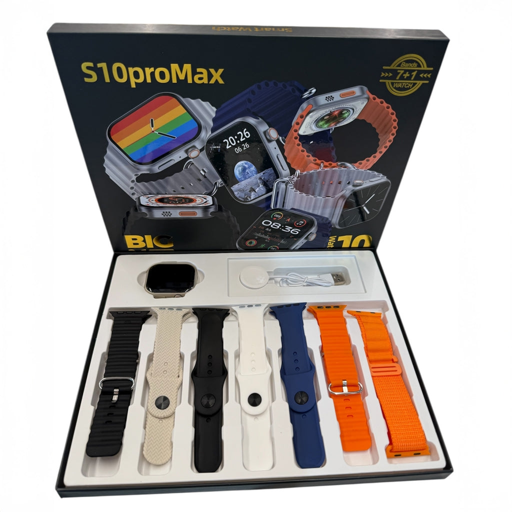 Smartwatch S10 Pro Max com 7 Braceletes Incluídas – Ecrã HD e Carregamento MagnéticoO Smartwatch S10 Pro Max combina design elegante com funcionalidades essenciais para o teu dia a dia. Com um ecrã de alta definição, monitorização de saúde e desporto, e compatibilidade com Android e iOS, este relógio adapta-se ao teu estilo e rotina.Inclui 7 braceletes de diferentes cores e estilos, permitindo-te mudar de visual sempre que quiseres. Com carregamento magnético e autonomia duradoura, é ideal para quem procura versatilidade, conforto e tecnologia num só produto.Por que vai adorar este modelo:• Ecrã HD com excelente nitidez e interface moderna• 7 braceletes incluídas – muda de estilo todos os dias• Monitorização de batimentos cardíacos, passos, sono e mais• Notificações de chamadas, mensagens e apps• Carregamento magnético prático e rápido• Compatível com Android e iOS